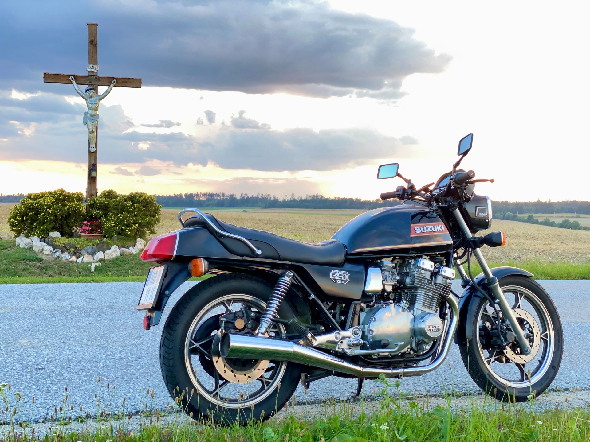 Nach einigen Jahren in denen ich eher sporadisch und mit wechselnden Motorräder unterwegs war kam der Umstieg auf die Suzuki GSX 750 E (Baujahr 1980). Und mit ihr intensivierte ich meine Reisetätigkeit durch Europa. Zehntausende Kilometer habe ich in Europa zurückgelegt – es gab niemals ernst zu nehmende Probleme. Es war für mich stets Vergnügen und Entspannung. Ich hab nun ein sehr zuverlässiges, wendiges und trotz seines Alters mehr als ausreichend starkes Motorrad. Der dauerhafte „Dialog“ mit meinem Motorrad trägt zu meinem Selbstbild bei und stellt einen Teil meiner Identität dar.